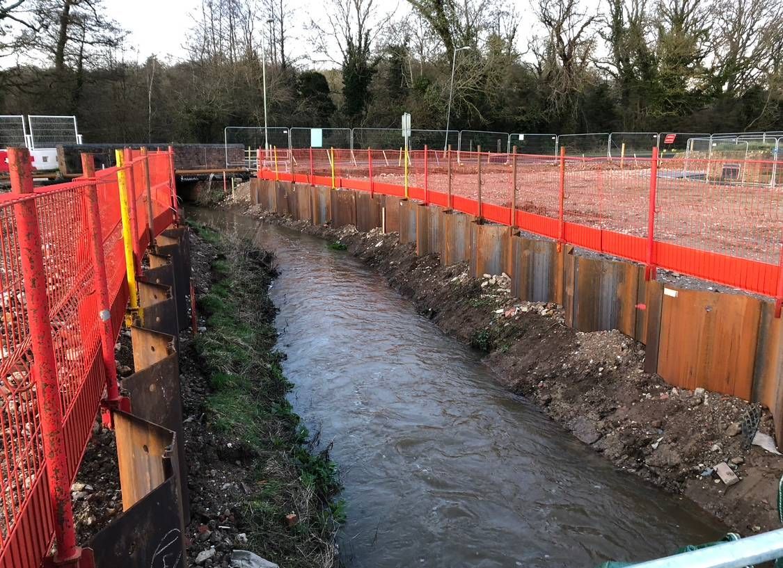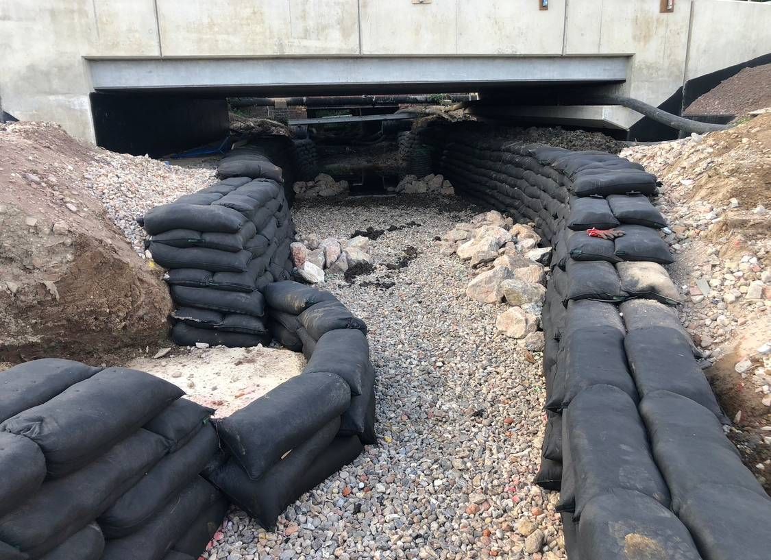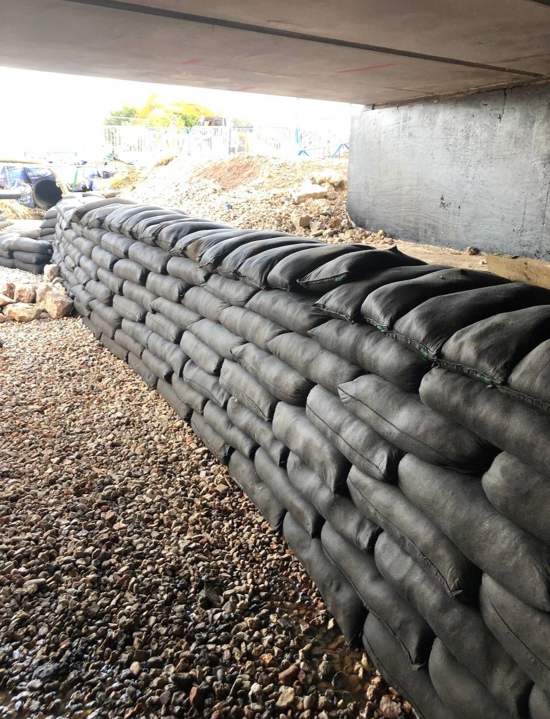 - River diversion / over pumping, widening & deepening of river bed & construction of flex bag river banks
