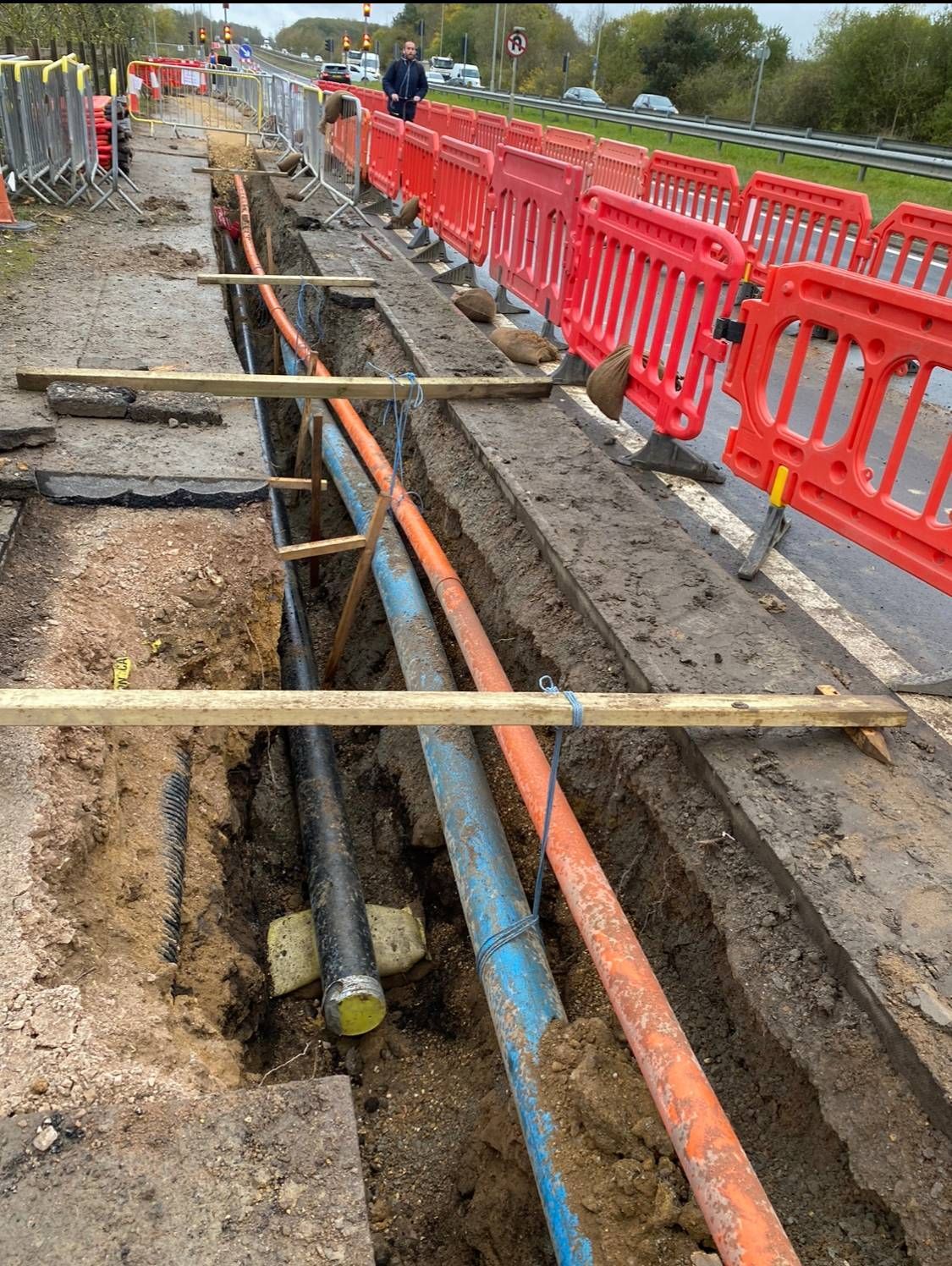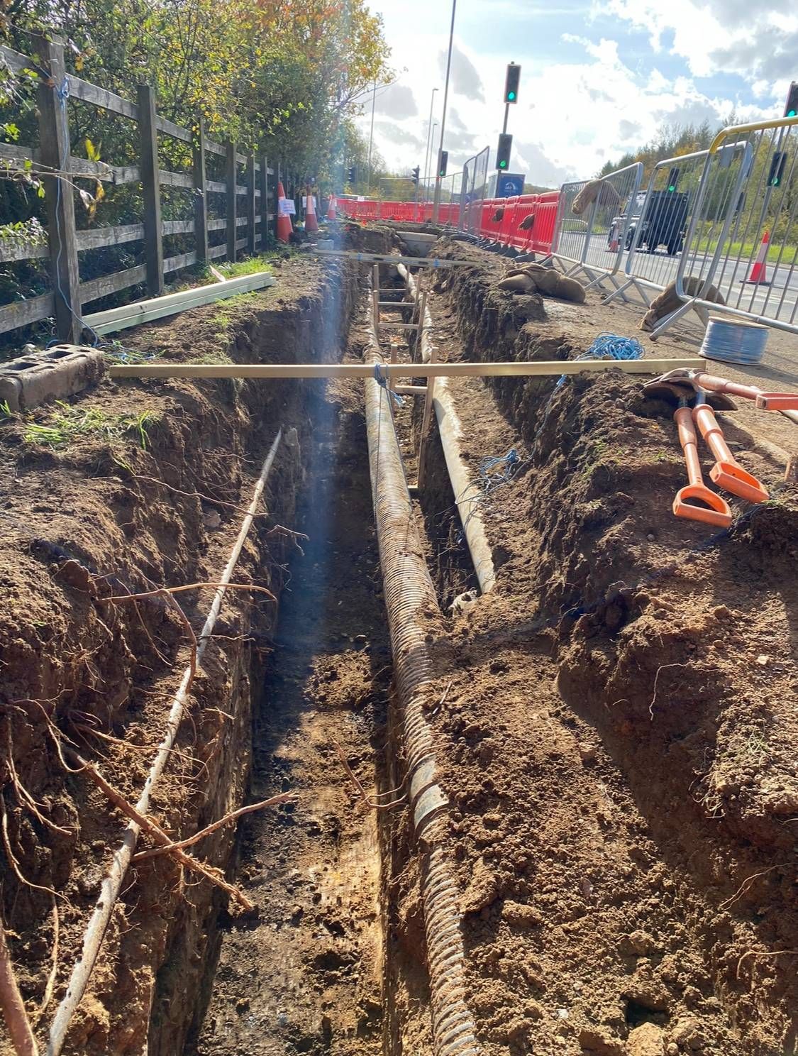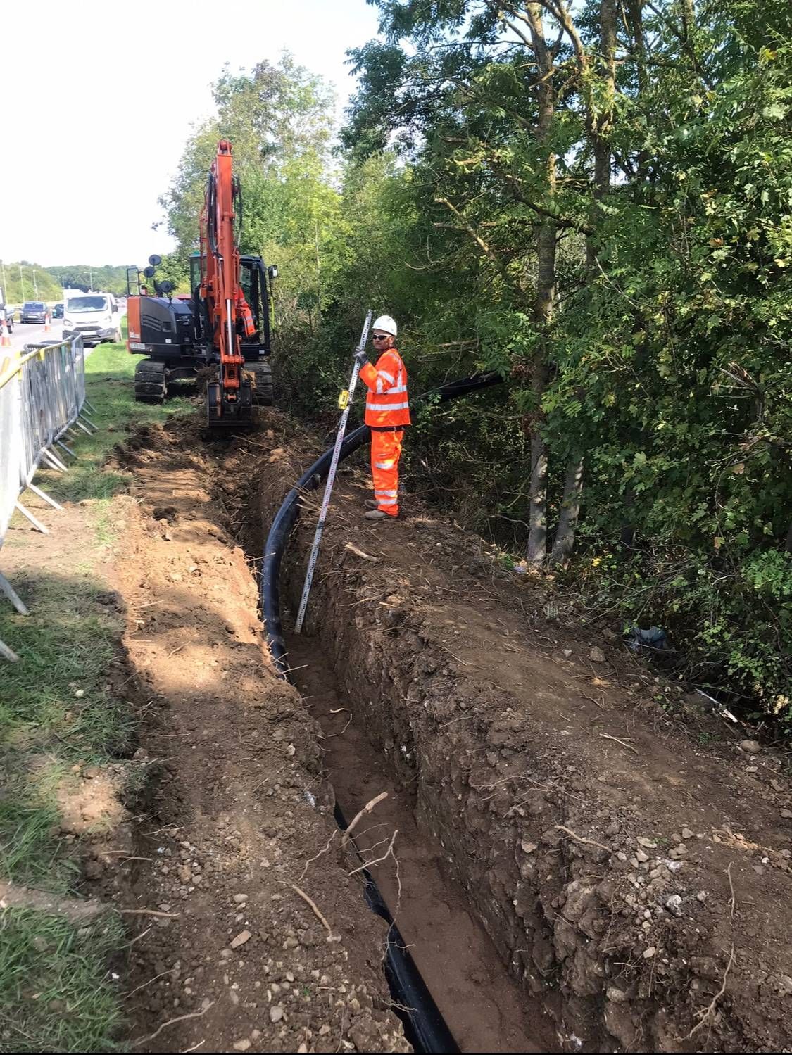 - Foul rising main, chambers and connection – 1km with significant existing services, working in lane closures on the A43