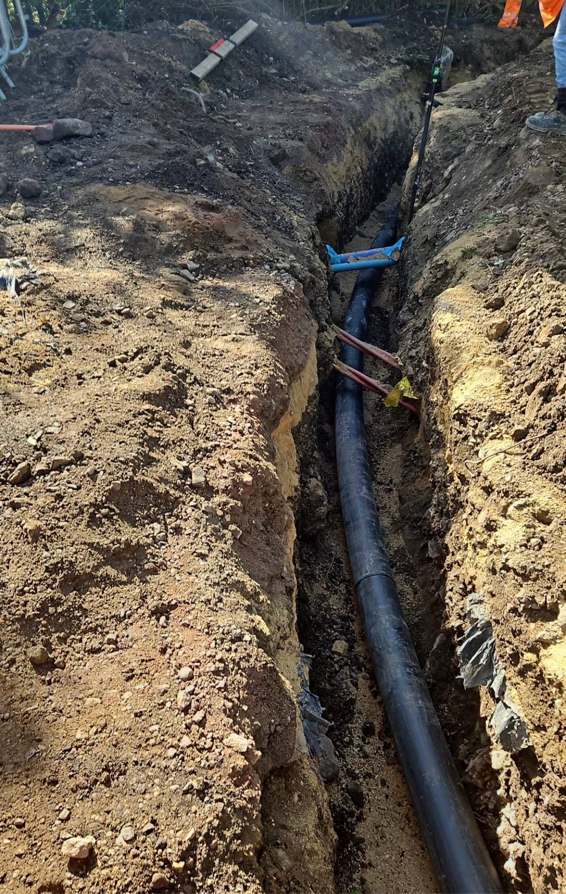 - Foul rising main connection into Anglian Water live foul sewer 6.5m deep